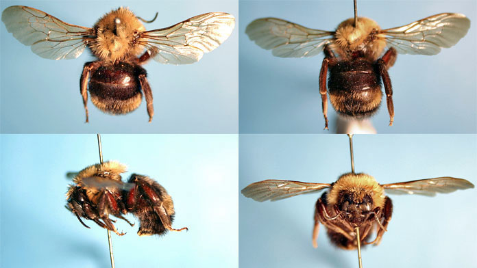 Queen: Face and vertex with hairs entirely black. Dorsum of thorax mostly with yellow hairs, but