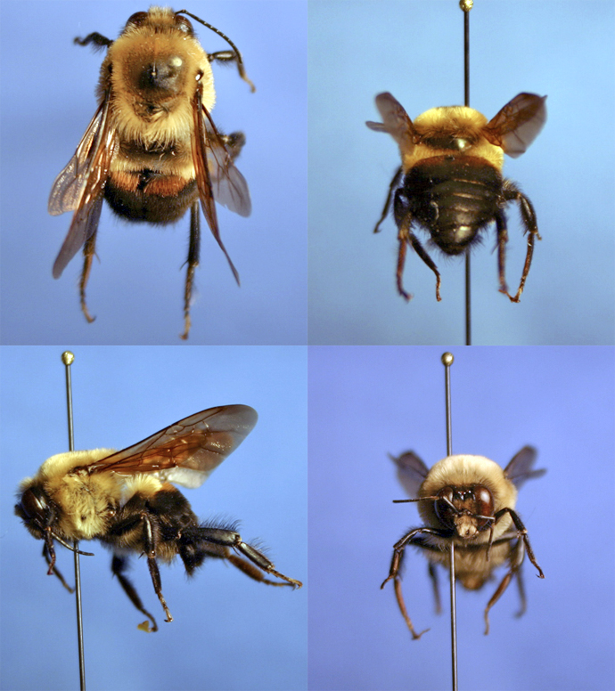 Worker: Marked as the queen, but tergite 2 may be almost entirely covered with yellow-brown hairs.